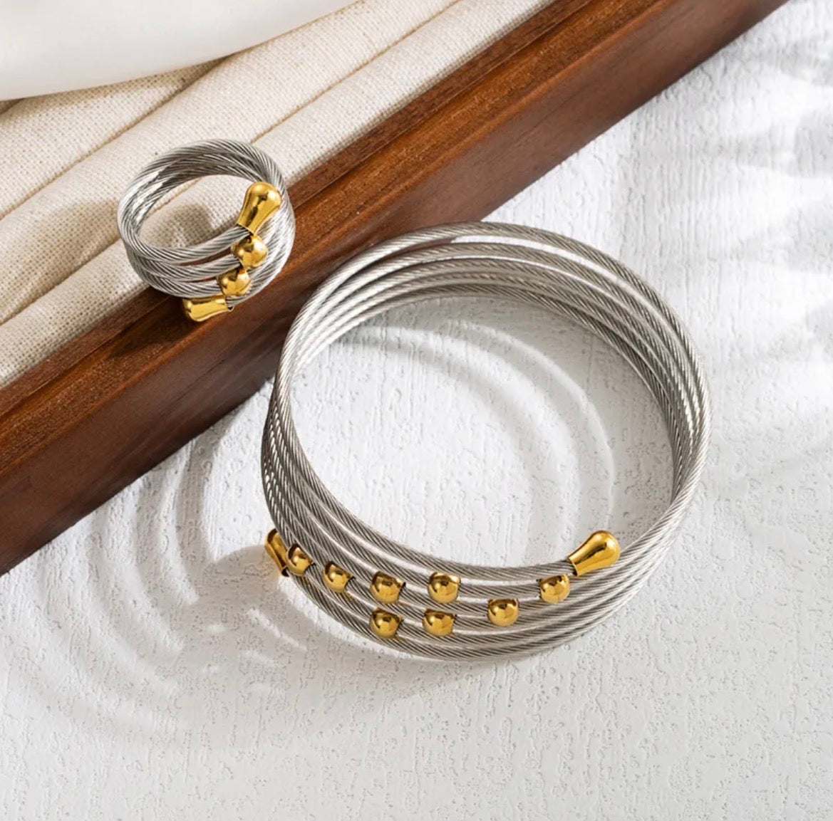 Set de sortija y pulsera ajustables en acero inoxidable